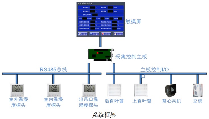 當(dāng)室外溫度低于室內(nèi)設(shè)定值,控制器開(kāi)啟新風(fēng)機(jī)引入室外新風(fēng),同時(shí)關(guān)閉室內(nèi)空調(diào)達(dá)到節(jié)能效果。