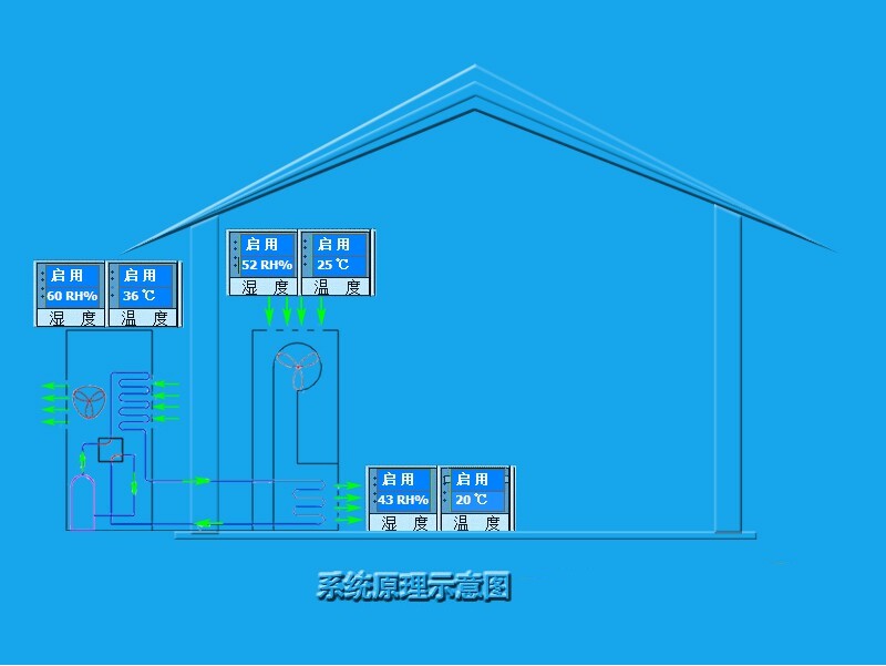 根據(jù)以上分析,上述各方法在預(yù)防凝露的同時(shí)都帶有難以克服的問(wèn)題。建議對(duì)整個(gè)房間內(nèi)部進(jìn)行整體除濕,從根本上解決電力設(shè)備內(nèi)部的潮濕問(wèn)題,大大延緩電力設(shè)備銹蝕進(jìn)程,增加設(shè)備可靠性,延長(zhǎng)運(yùn)行壽命。